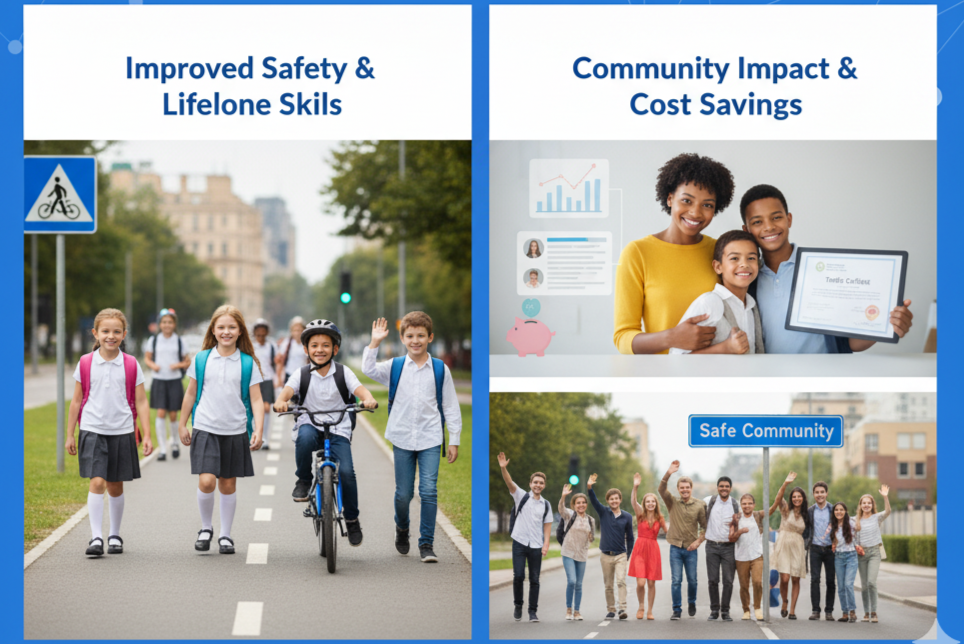 Students who complete a traffic safety course are more likely to follow safe practices on the road, whether they are walking, biking, or driving. This leads to a reduction in accidents and injuries.